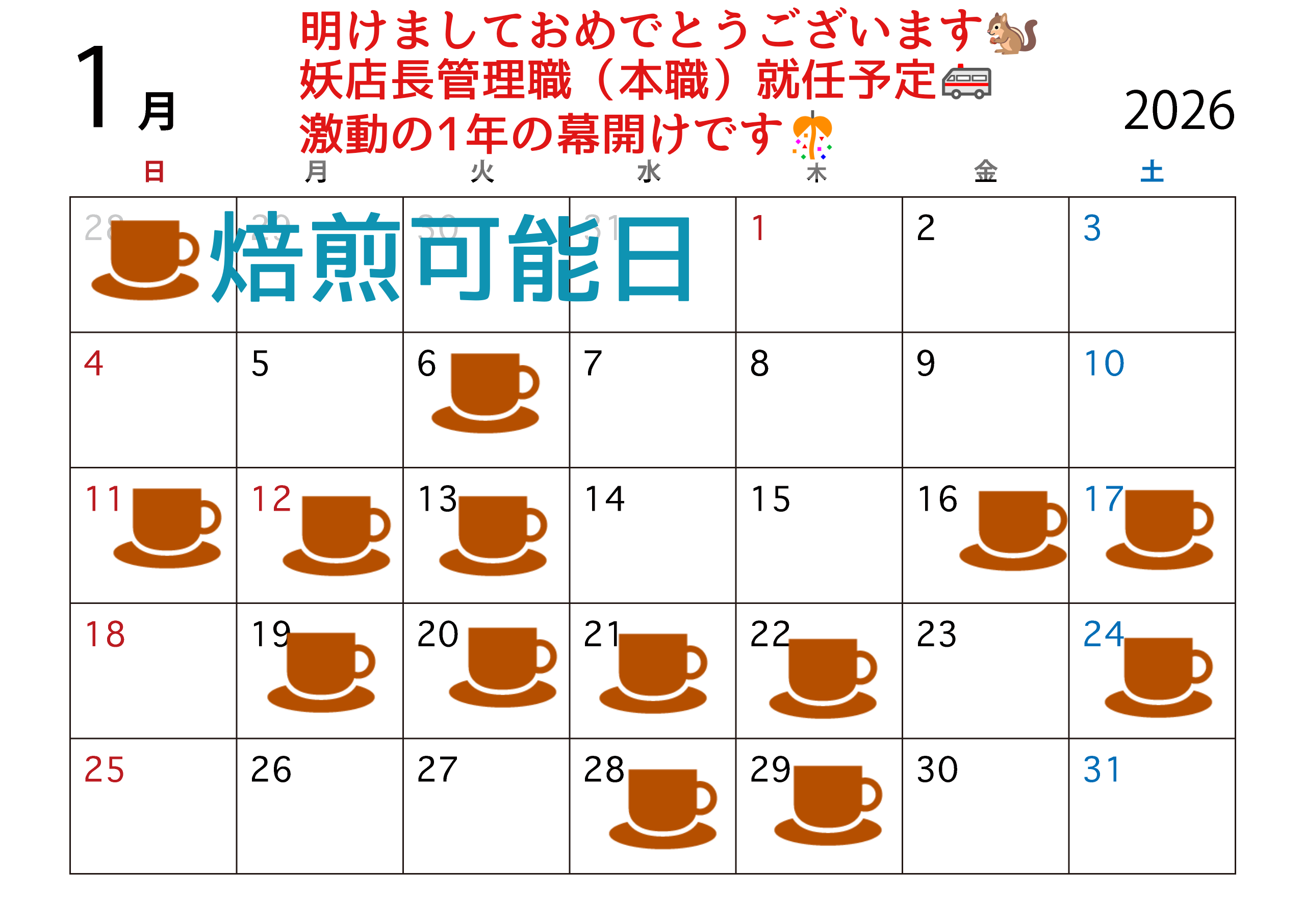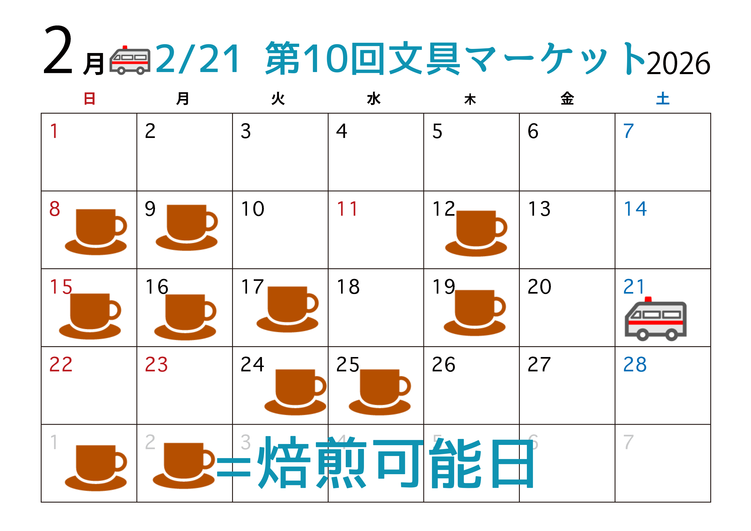 ☕焙煎&🚑出展カレンダー