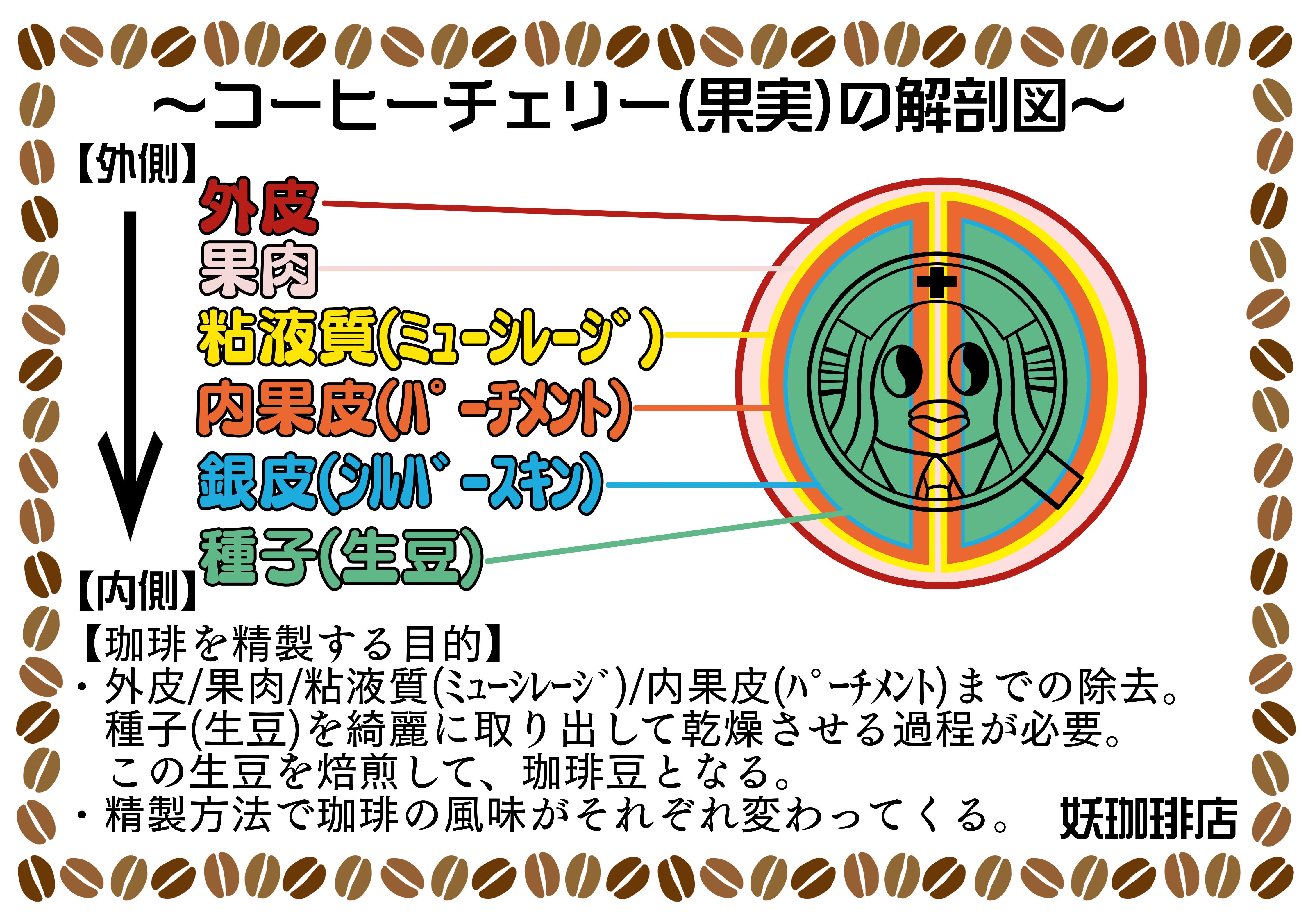 外皮/果肉/粘液質(ミューシレージ)/内果皮(パーチメント)までの除去。