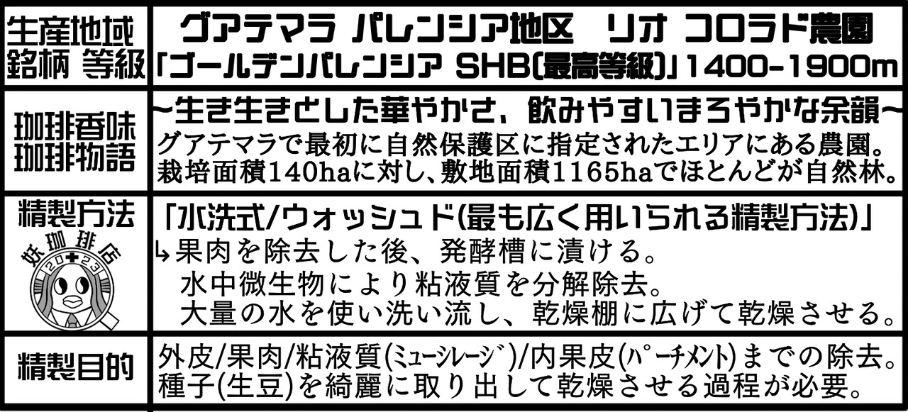 『グアテマラ ゴールデンパレンシア リオ コロラド農園 SHB ✕中深煎り』