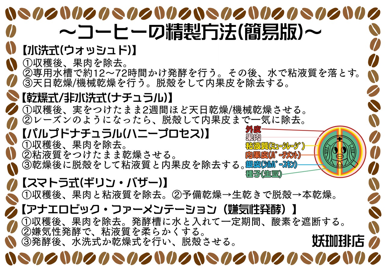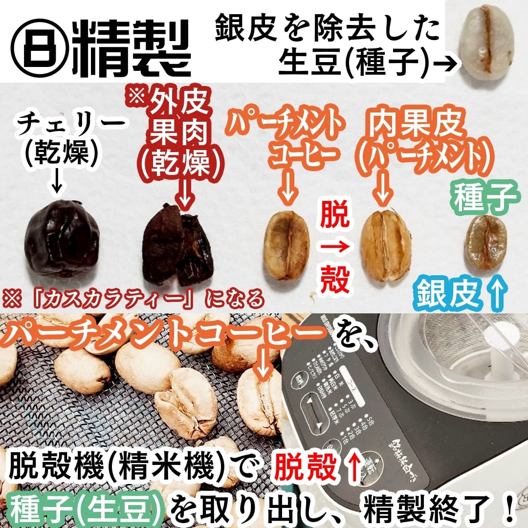 外皮/果肉/粘液質(ミューシレージ)/内果皮(パーチメント)までの除去。