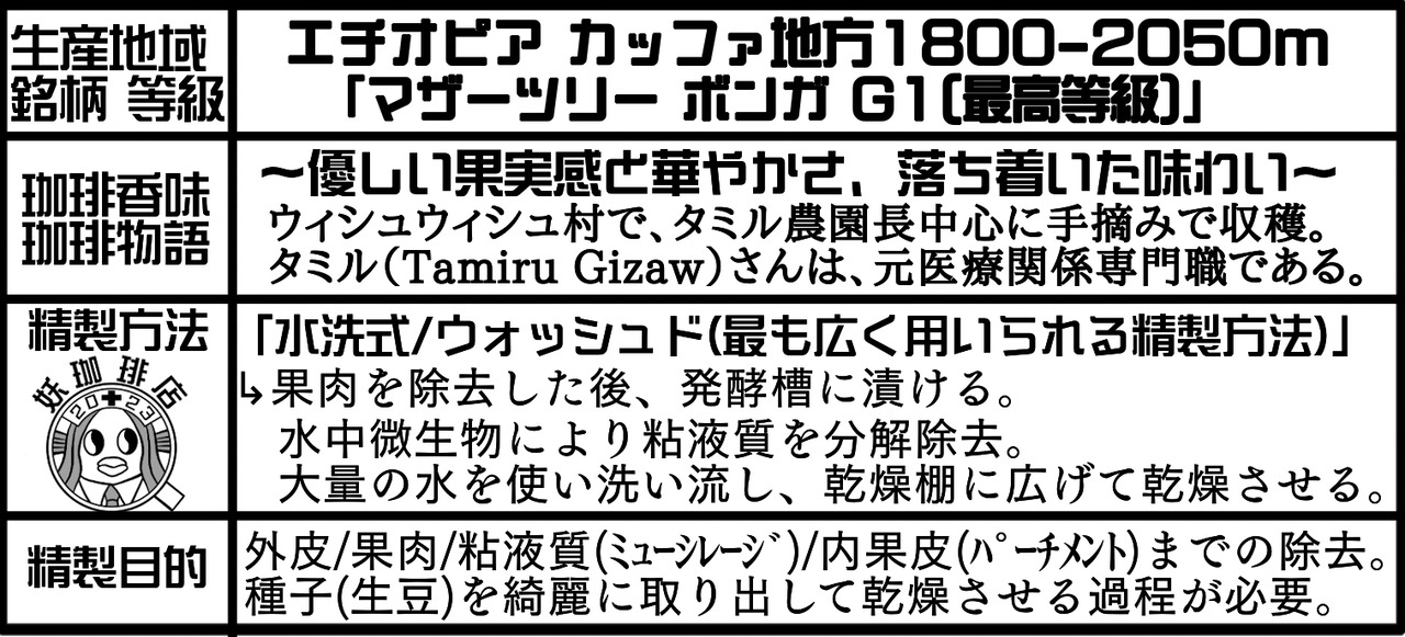 『エチオピア カッファ マザーツリー ボンガ G1✕中深煎り』